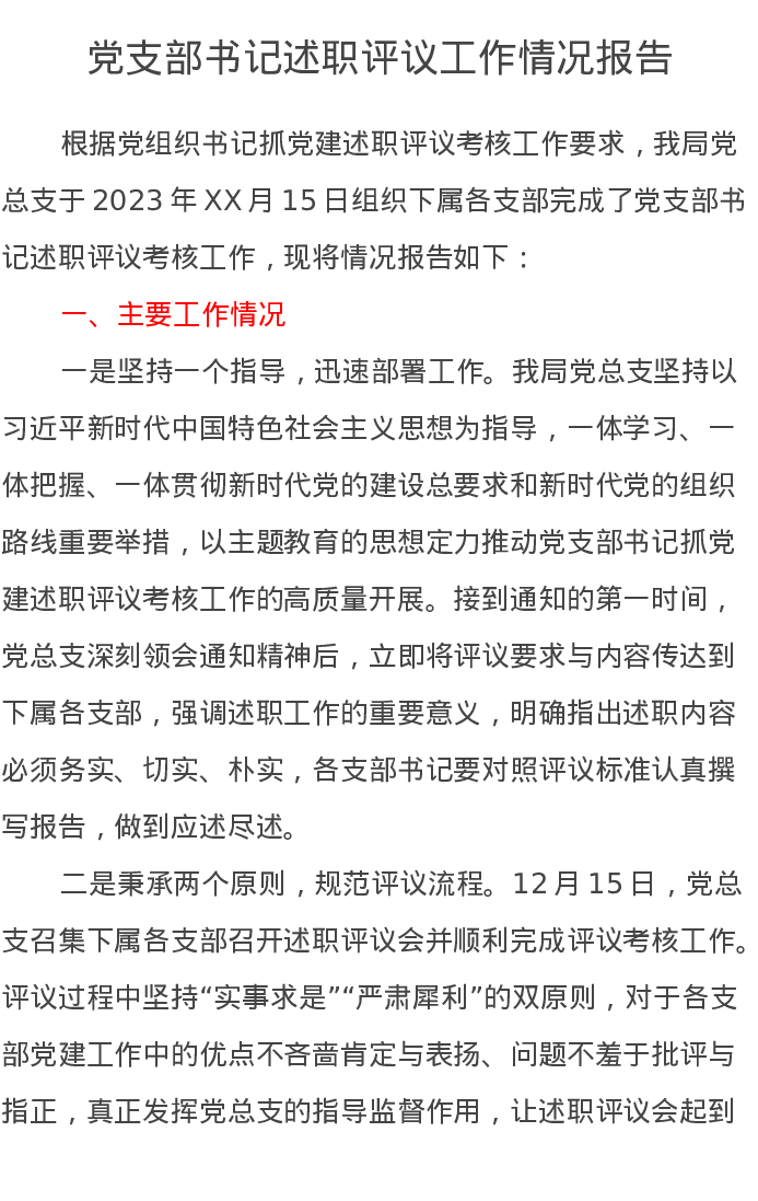 党支部书记述职评议工作情况报告
