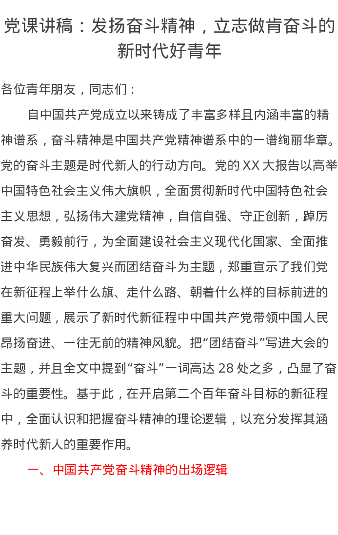 党课讲稿:发扬奋斗精神,立志做肯奋斗的新时代好青年