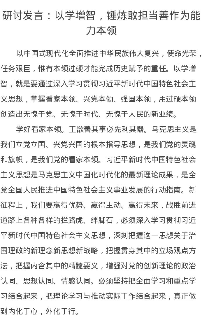 研讨发言:以学增智,锤炼敢担当善作为能力本领