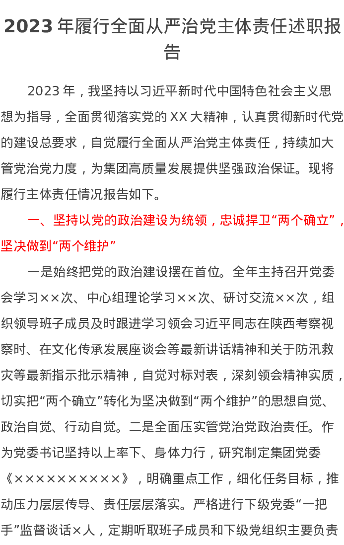 2023年履行全面从严治党主体责任述职报告