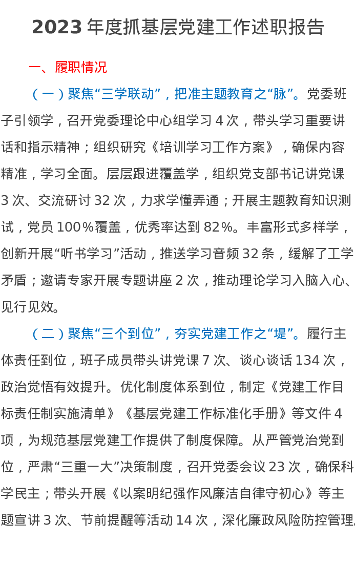 2023年度抓基层党建工作述职报告6