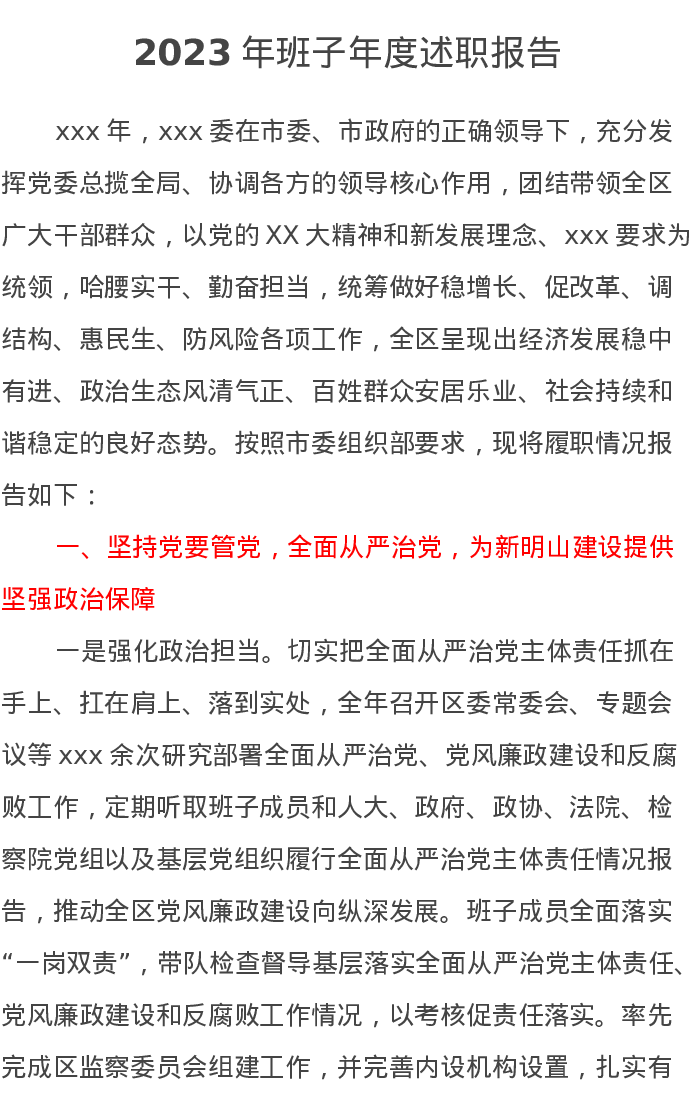 2023年班子年度述职报告