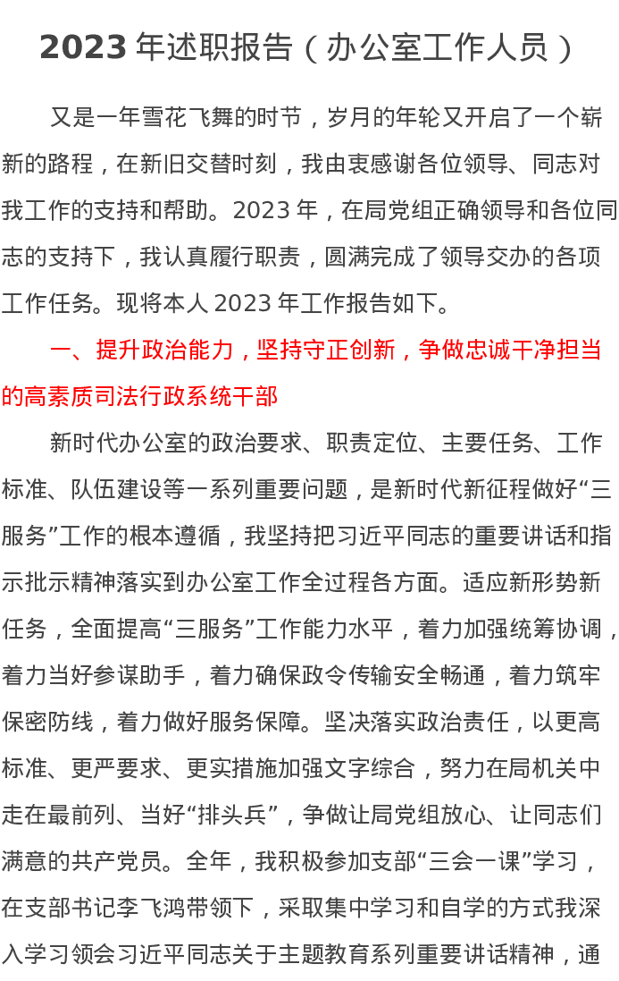 2023年述职报告(办公室工作人员)