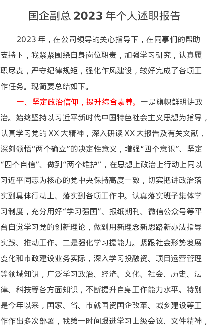 国企副总2023年个人述职报告