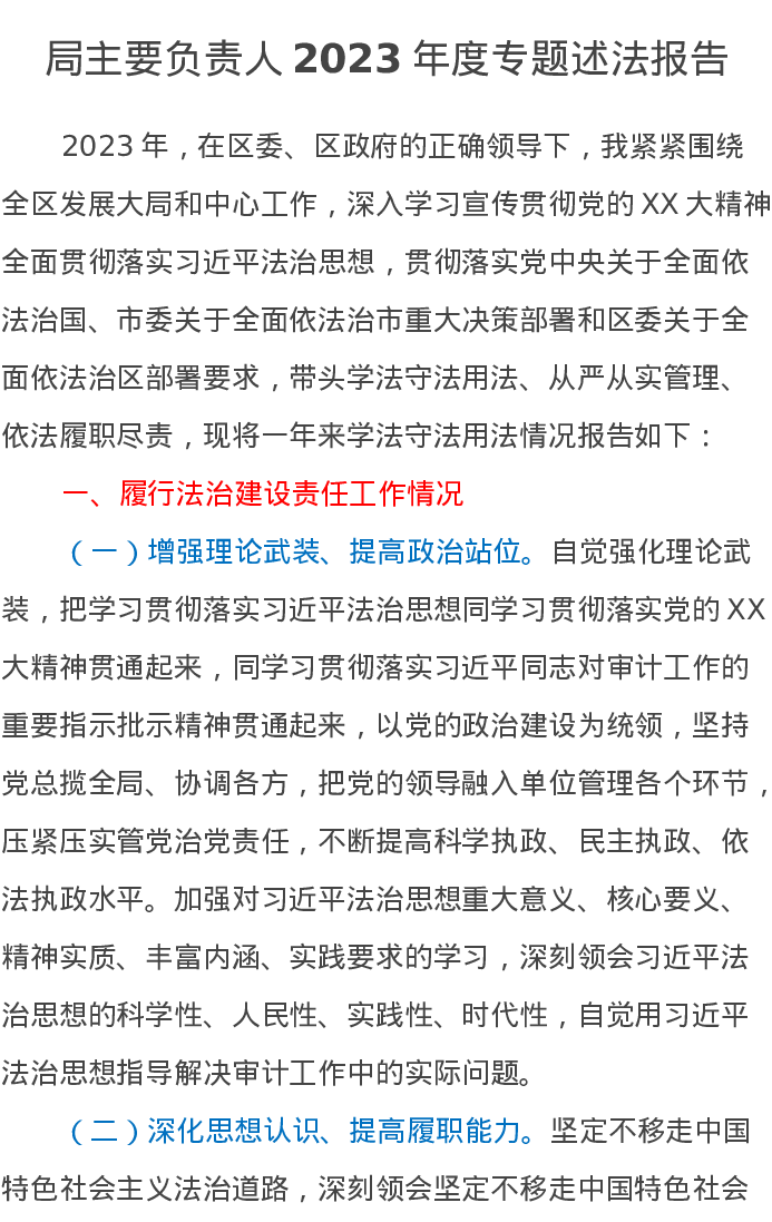 局主要负责人2023年度专题述法报告