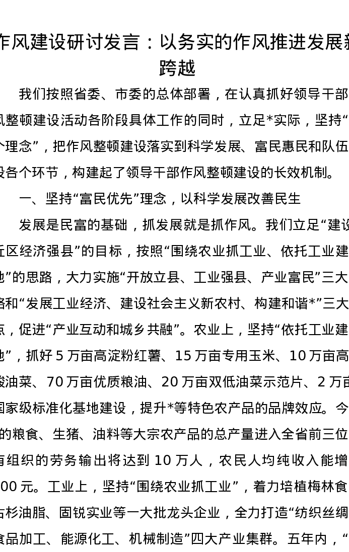 作风建设研讨发言:以务实的作风推进发展新跨越