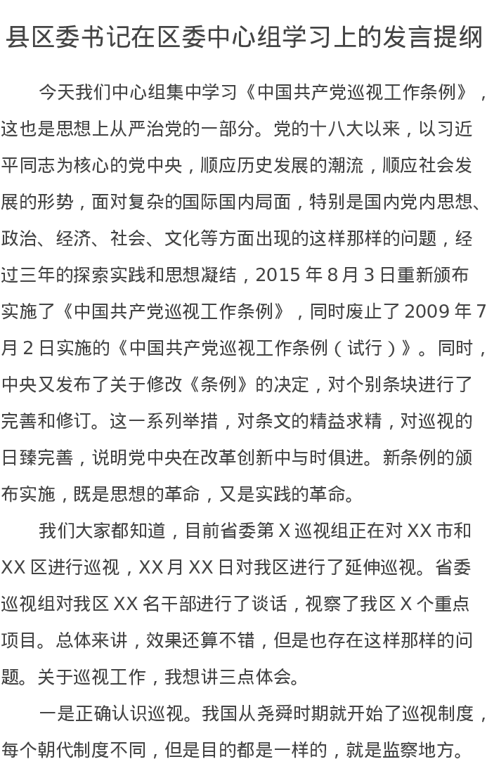 县区委书记在区委中心组学习上的发言提纲