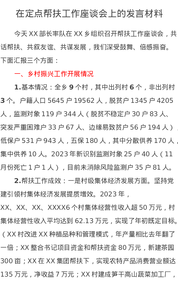 在定点帮扶工作座谈会上的发言材料