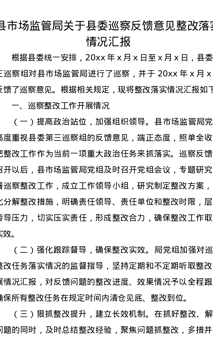 县市场监管局关于县委巡察反馈意见整改落实情况汇报