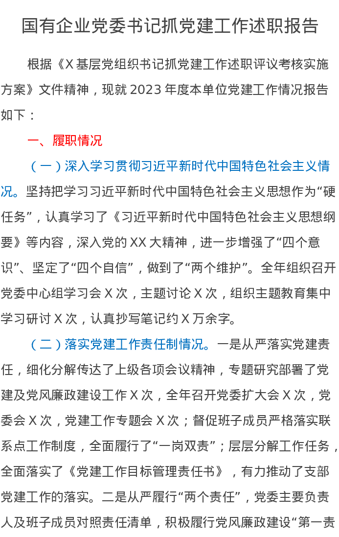 2023年国有企业党委书记抓党建工作述职报告