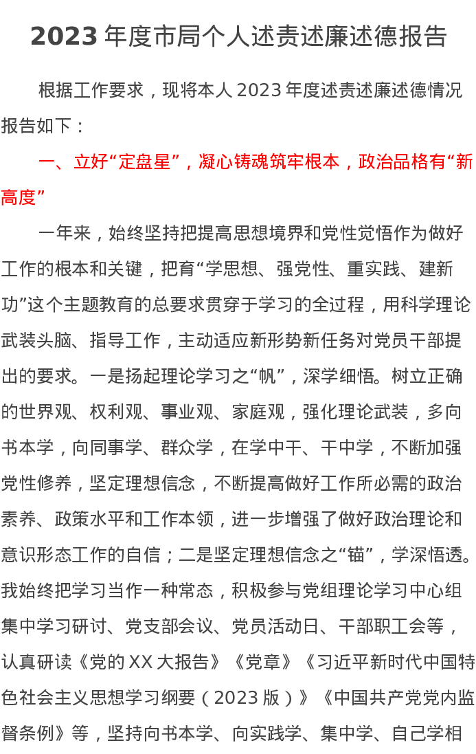 2023年度市局个人述责述廉述德报告