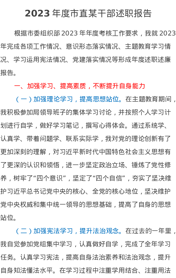 2023年度市直某干部述职报告