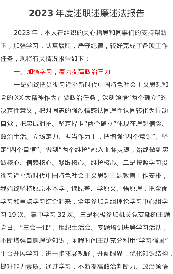 2023年度述职述廉述法报告