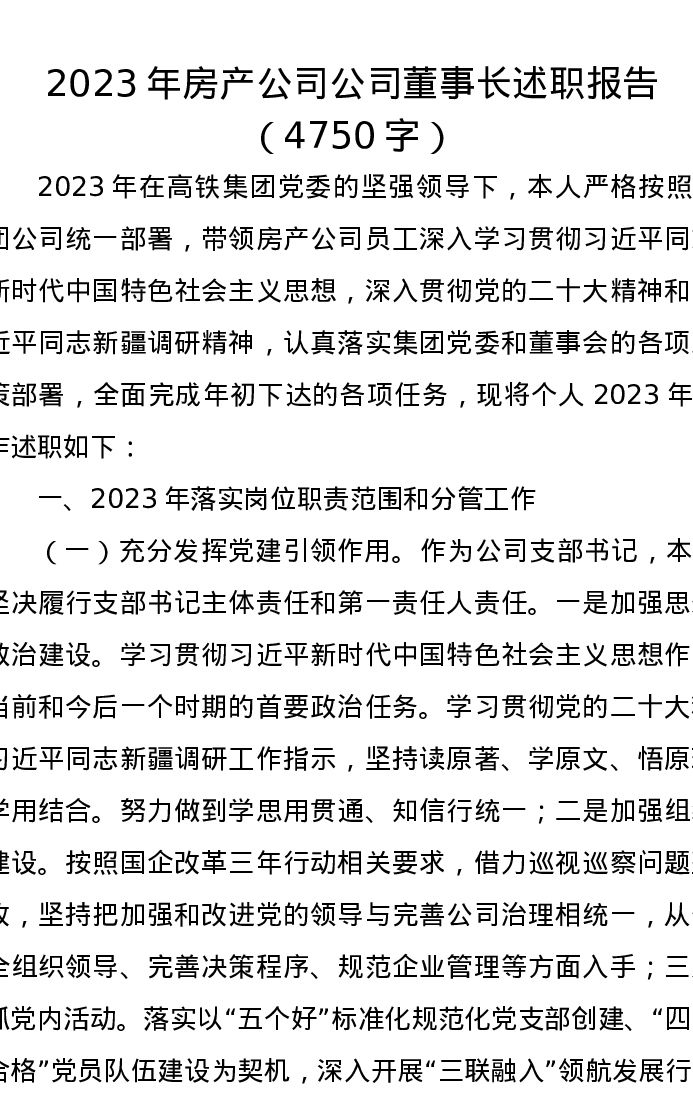2023年房产公司公司董事长述职报告