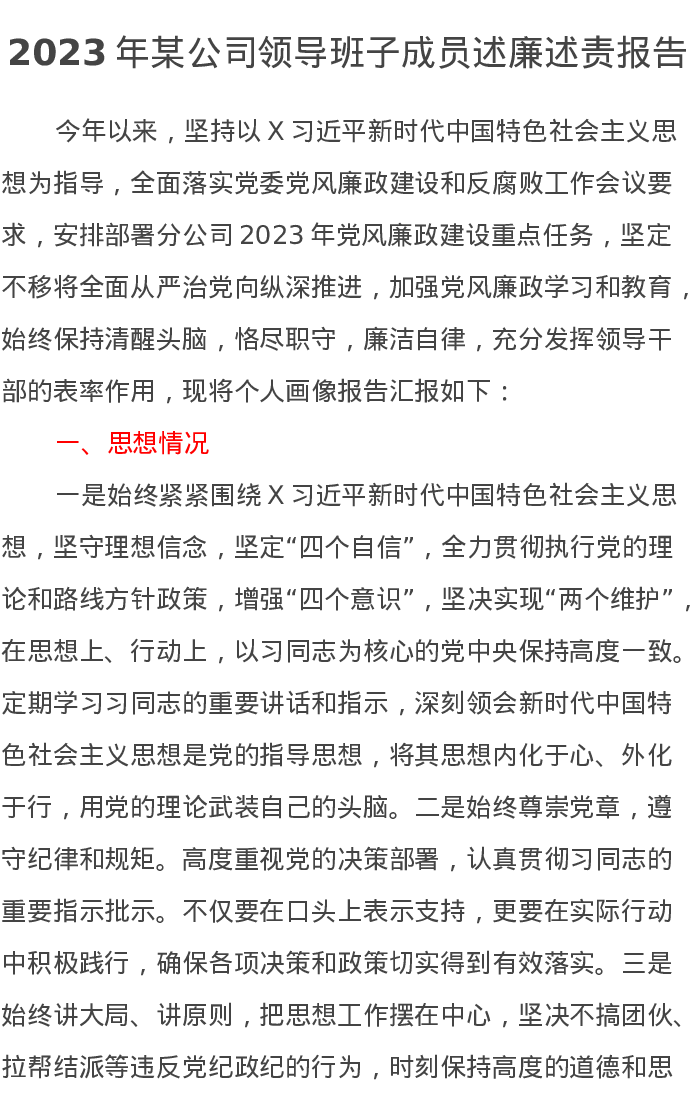 2023年某公司领导班子成员述廉述责报告