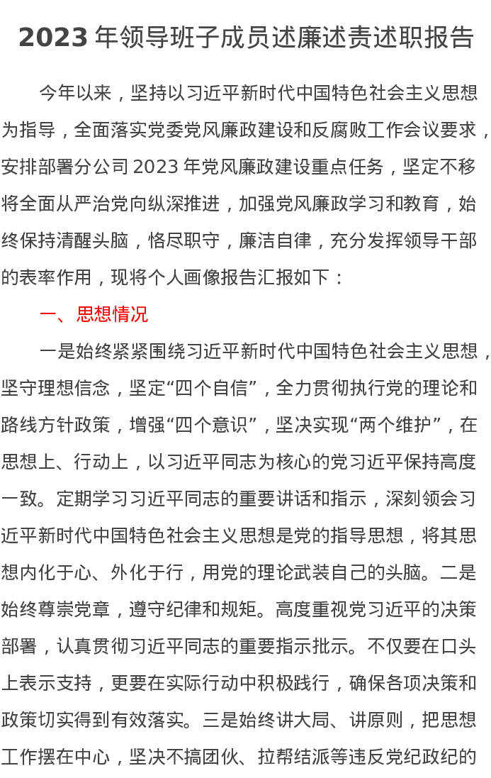 2023年领导班子成员述廉述责述职报告