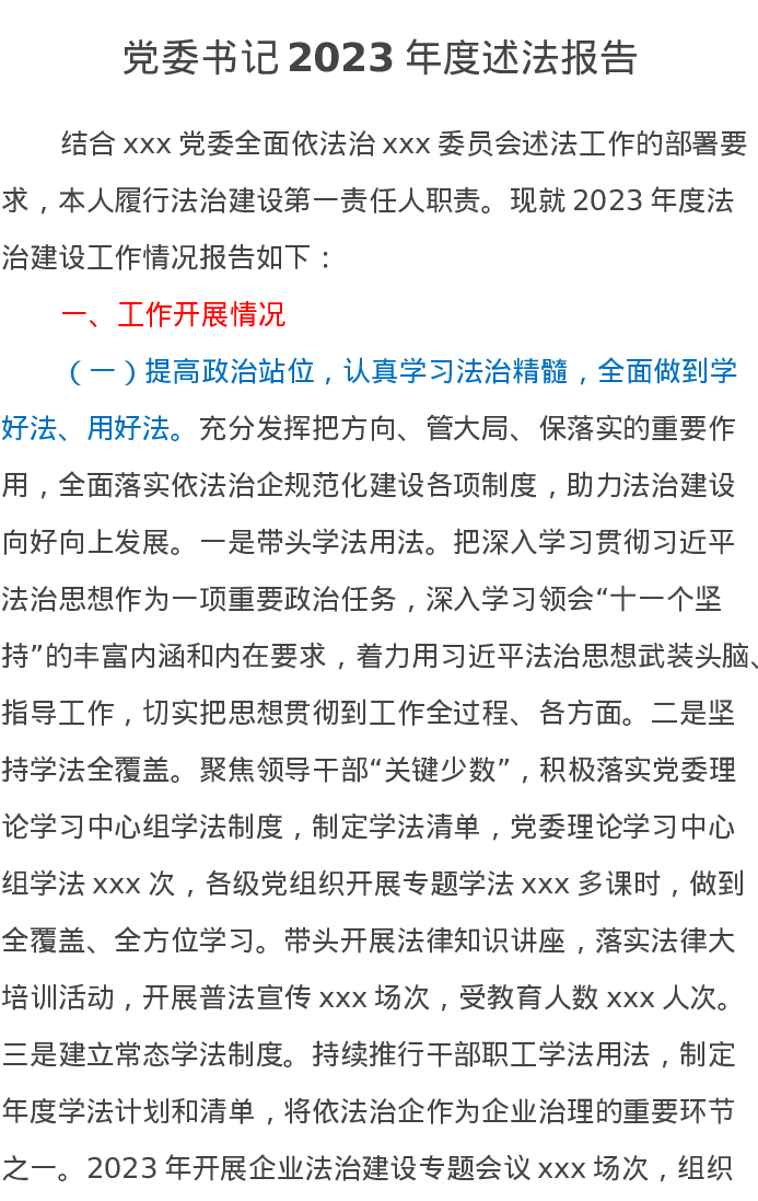 党委书记2023年度述法报告