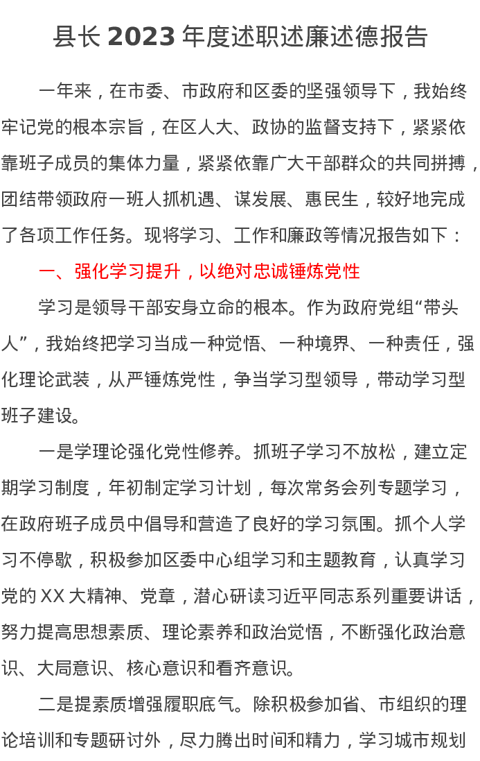 县长2023年度述职述廉述德报告