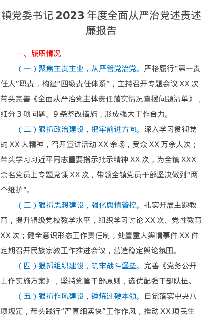 镇党委书记2023年度全面从严治党述责述廉报告