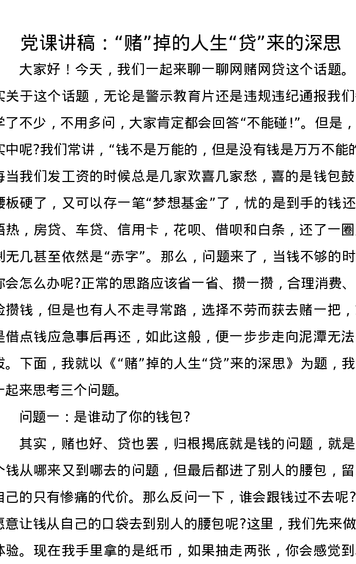 党课讲稿:“赌”掉的人生“贷”来的深思