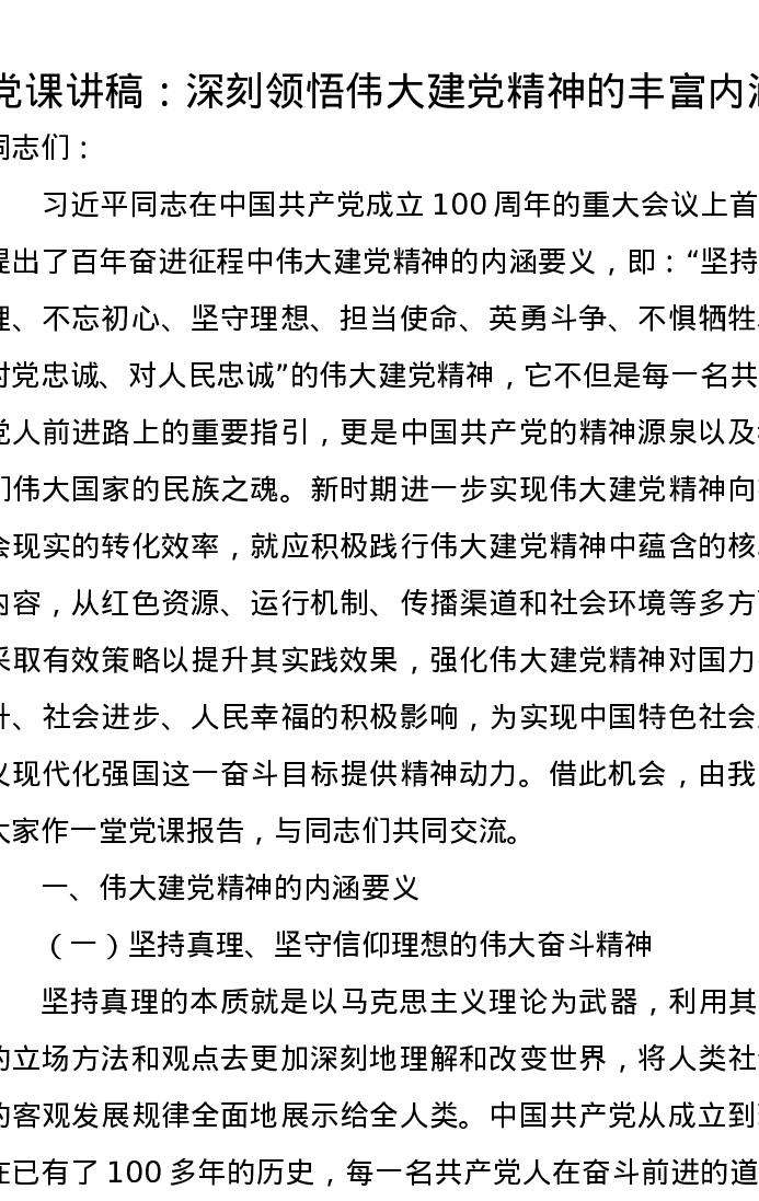党课讲稿:深刻领悟伟大建党精神的丰富内涵