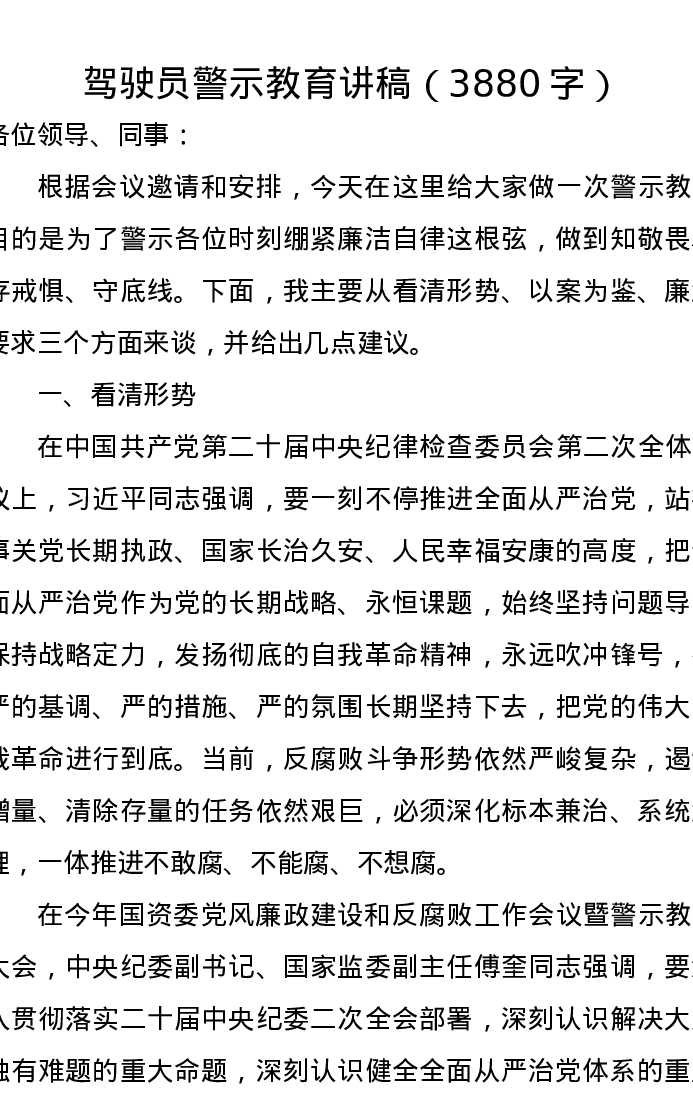 驾驶员警示教育讲稿