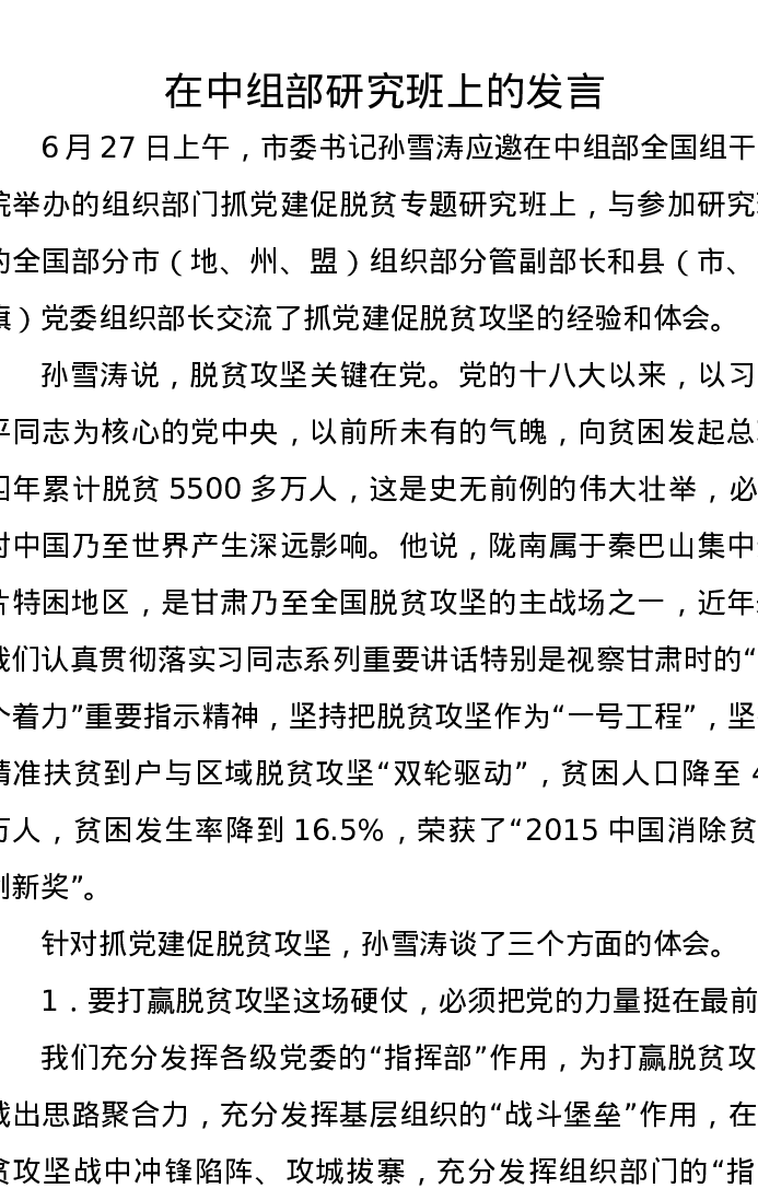在中组部研究班上的发言
