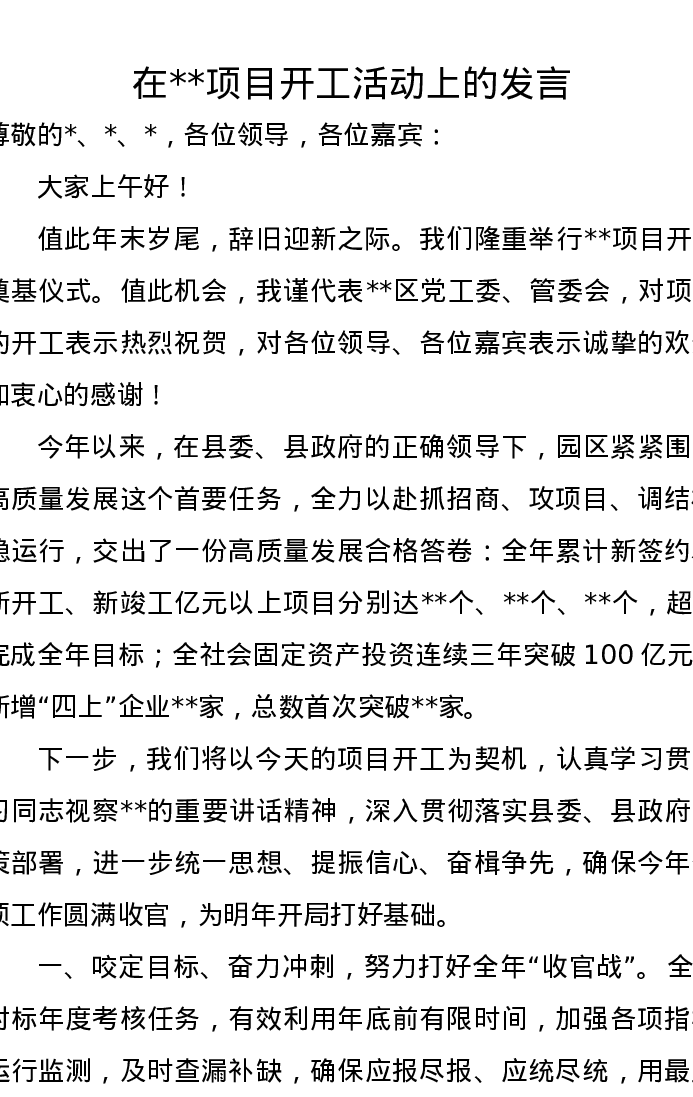 在项目开工活动上的发言