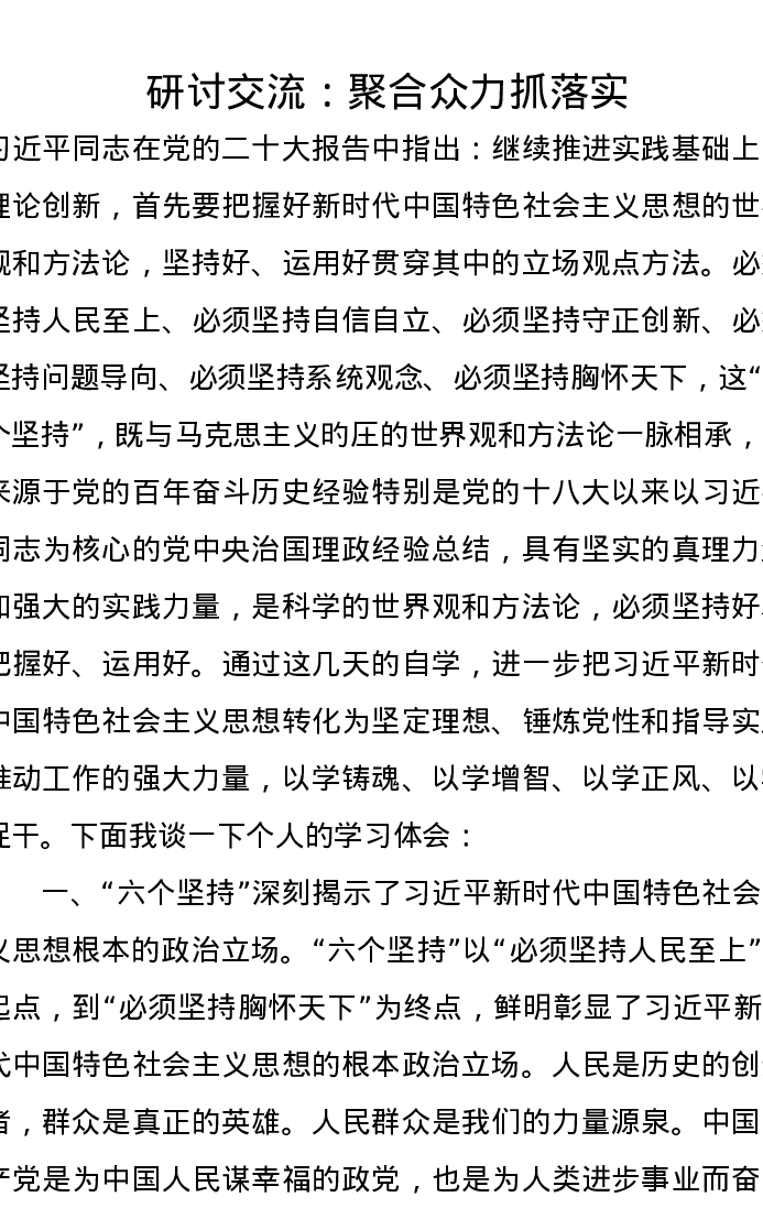 研讨交流发言:聚合众力抓落实