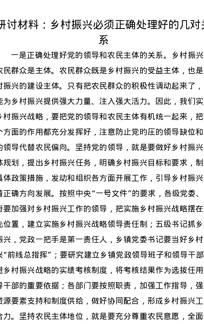 研讨发言:乡村振兴必须正确处理好的几对关系