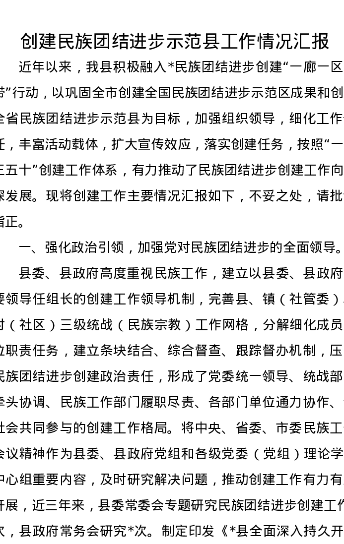 创建民族团结进步示范县工作情况汇报