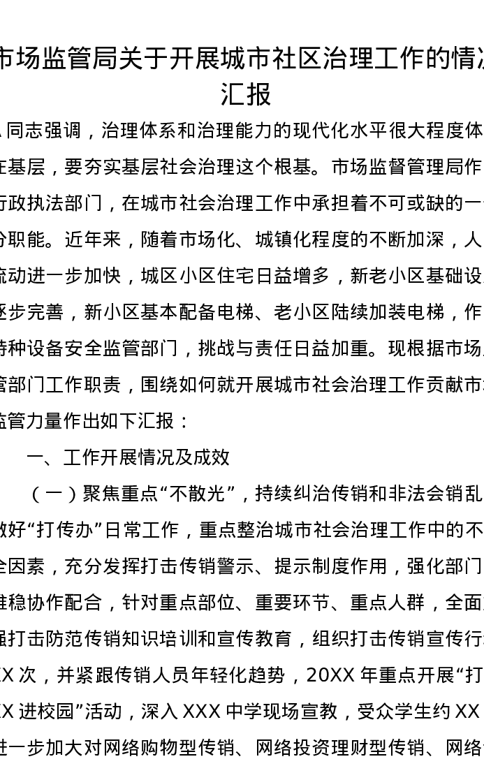 市场监管局关于开展城市社区治理工作的情况汇报
