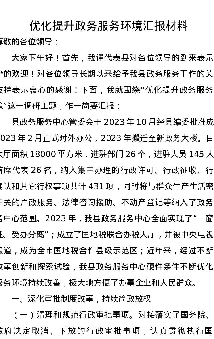 优化提升政务服务环境总结汇报(政务服务中心)