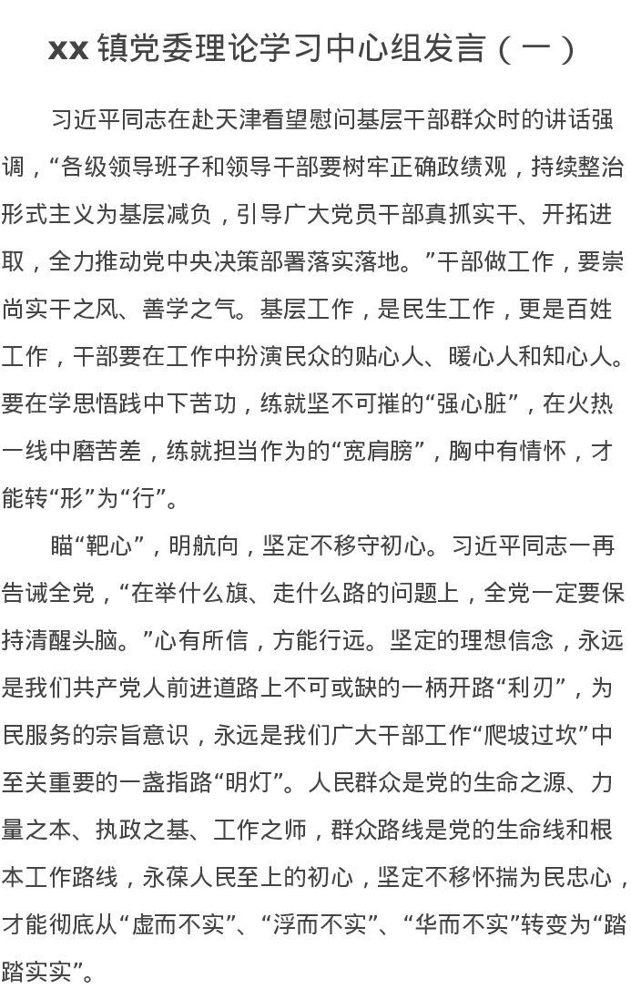 xx镇党委理论学习中心组发言1