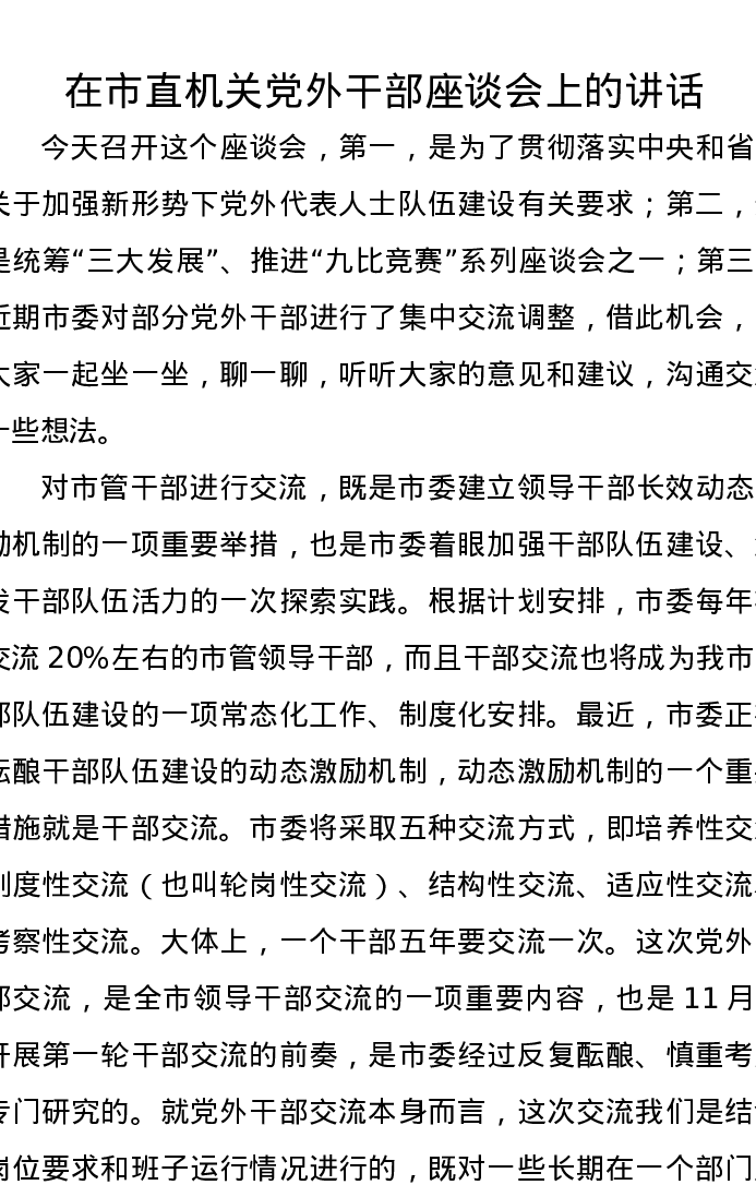 优选讲话:在市直机关党外干部座谈会上的讲话
