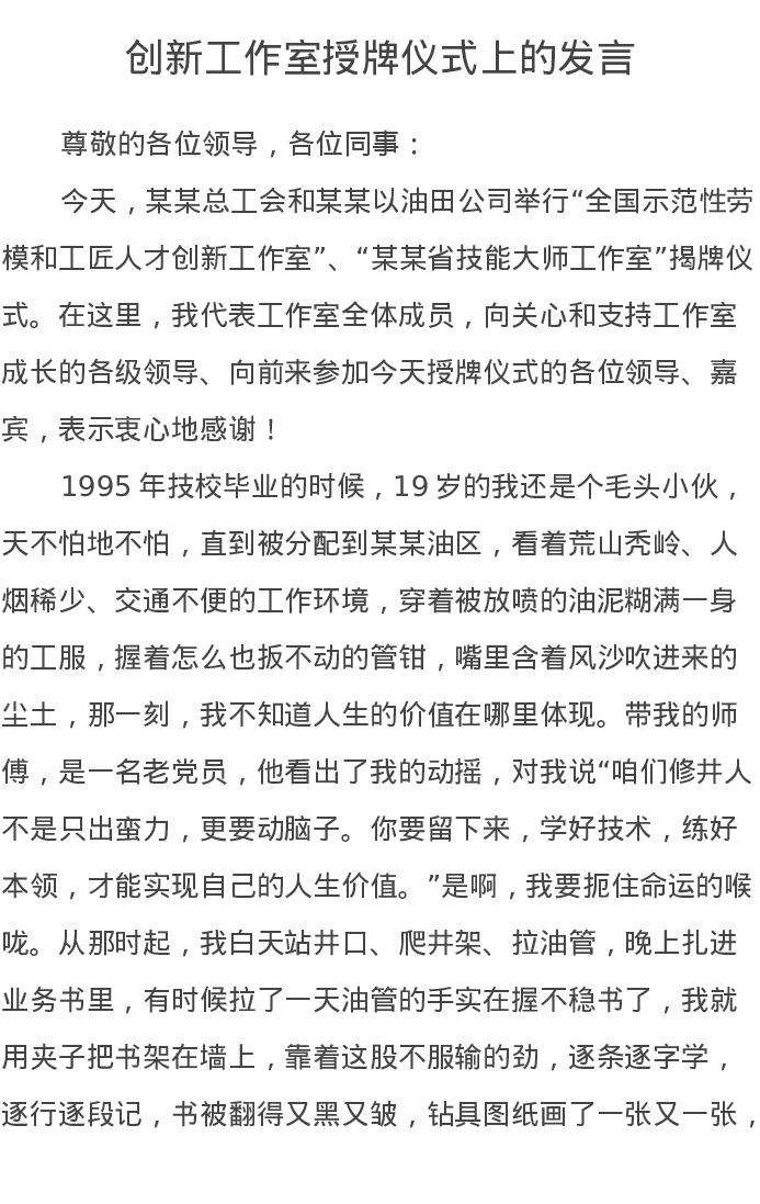 创新工作室授牌仪式上的发言