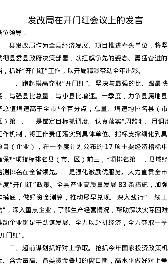 发改局在开门红会议上的发言