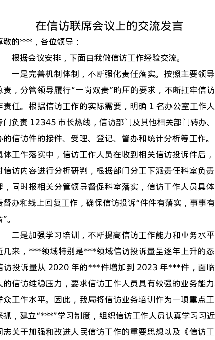 在信访联席会议上的交流发言