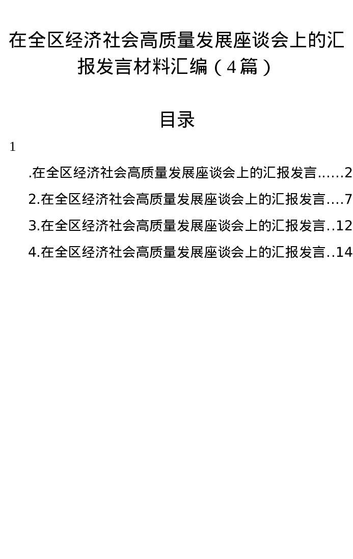 优选汇编:在全区经济社会高质量发展座谈会上的汇报发言材料4篇