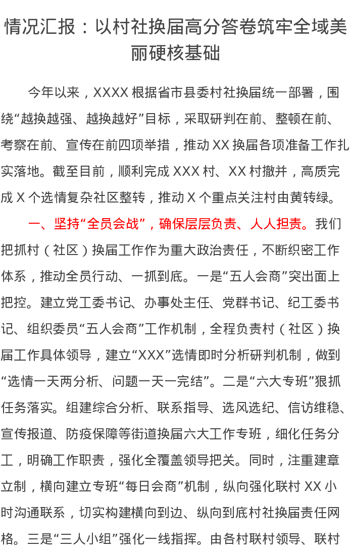 情况汇报:以村社换届高分答卷筑牢全域美丽硬核基础