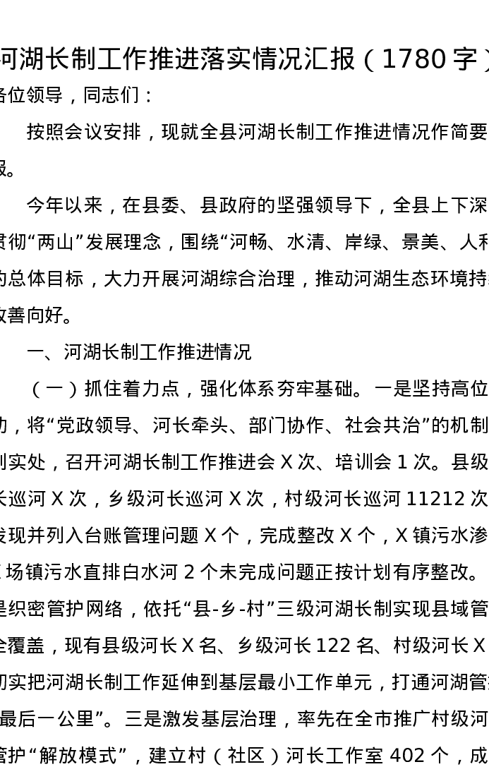 河湖长制工作推进落实情况汇报