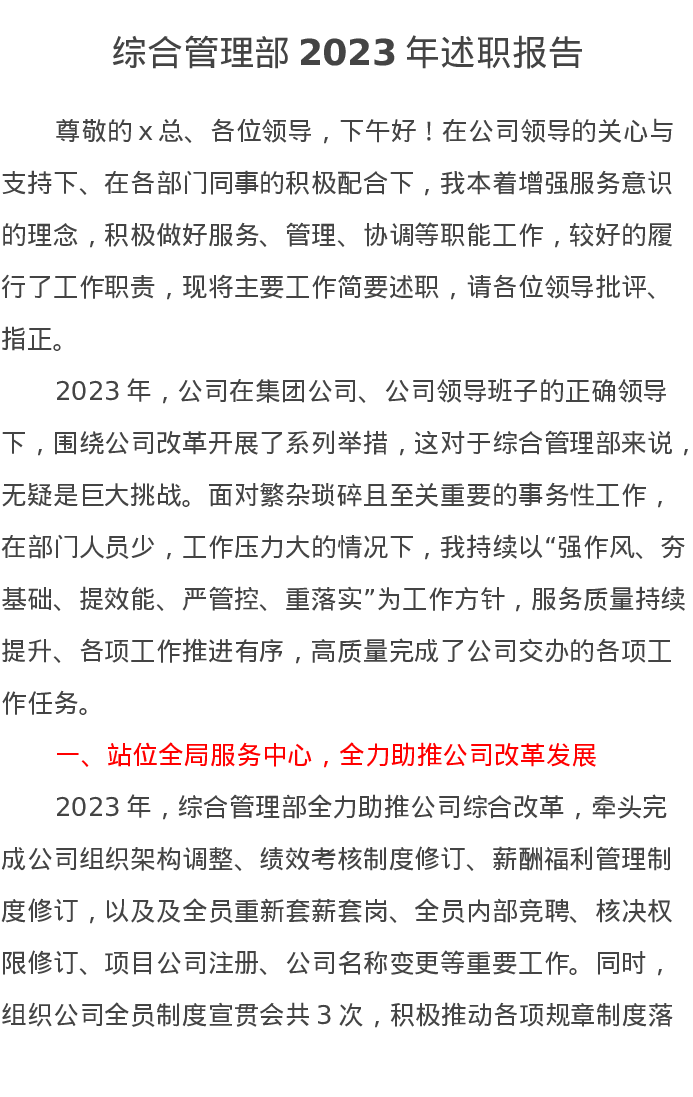 综合管理部2023年述职报告