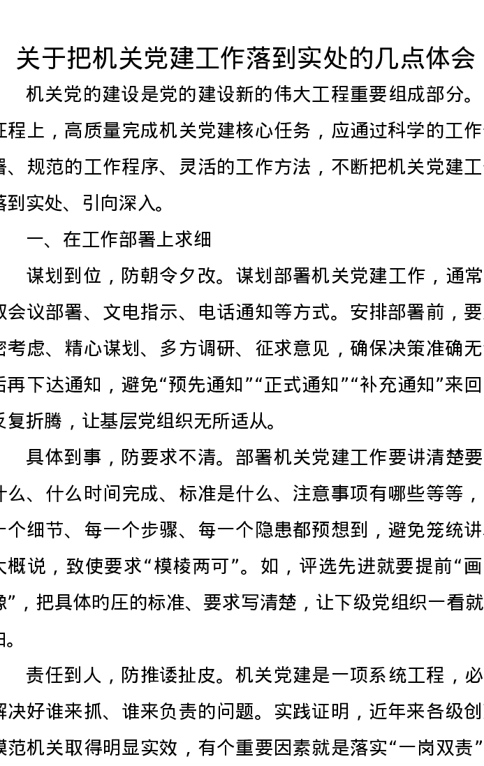 关于把机关党建工作落到实处的几点体会