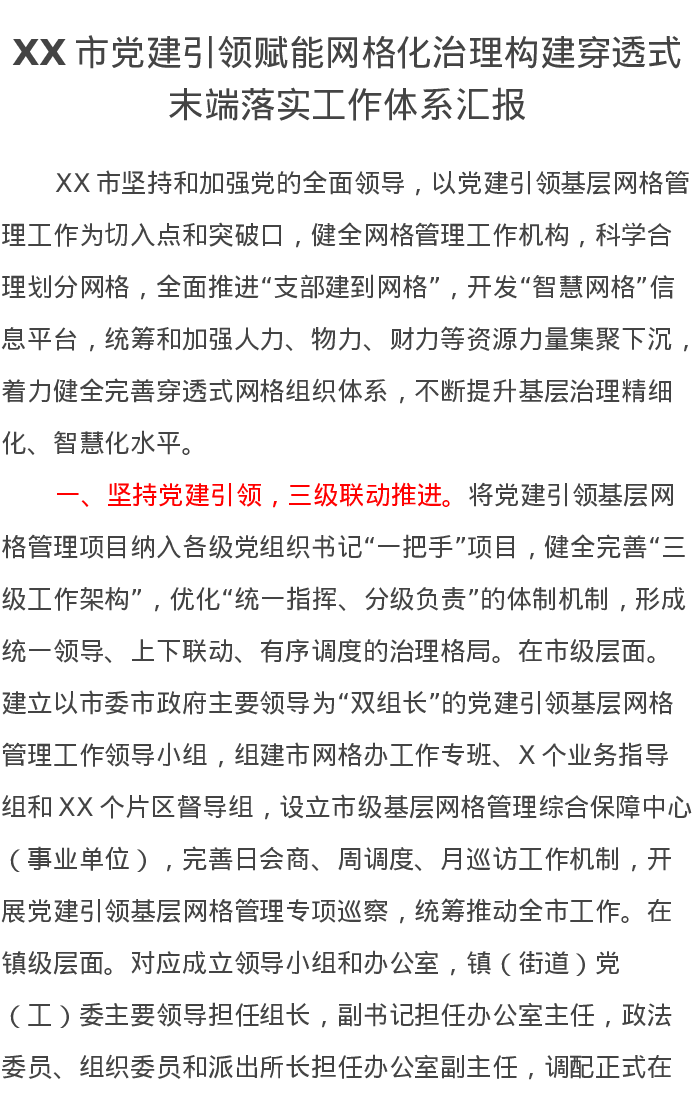 XX市党建引领赋能网格化治理构建穿透式末端落实工作体系汇报