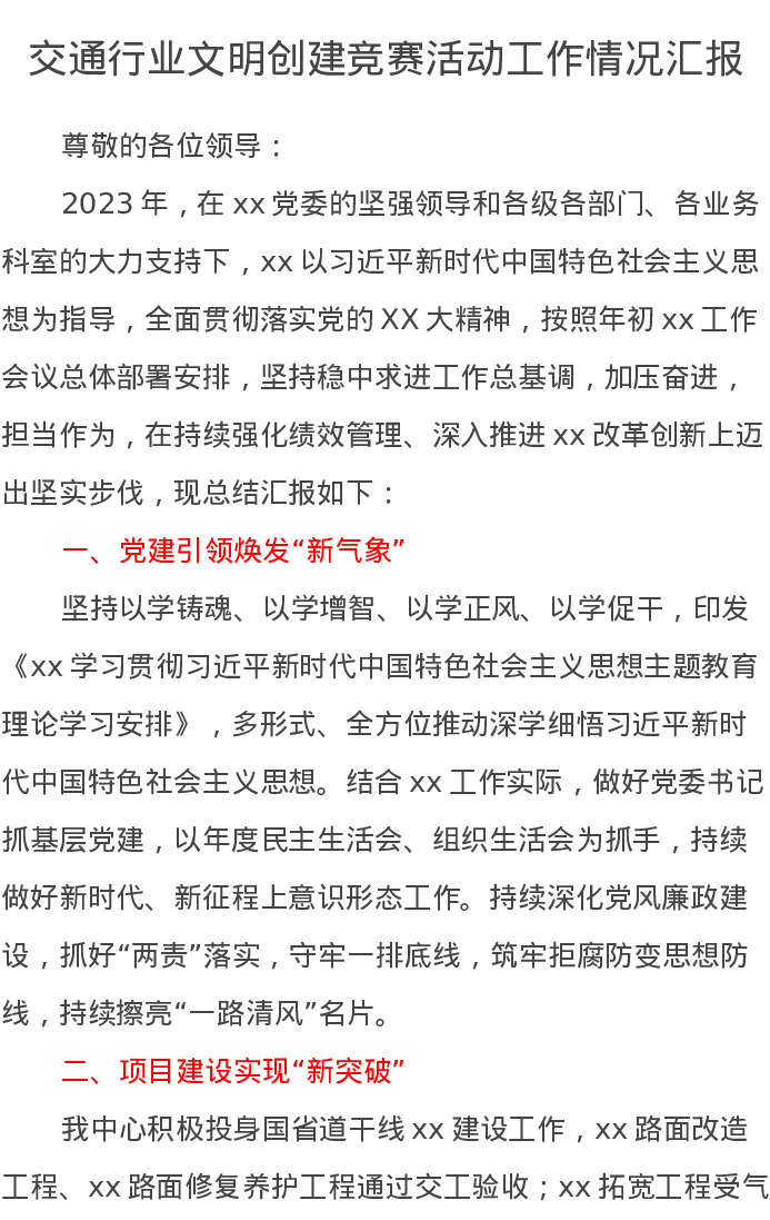 交通行业文明创建竞赛活动工作情况汇报