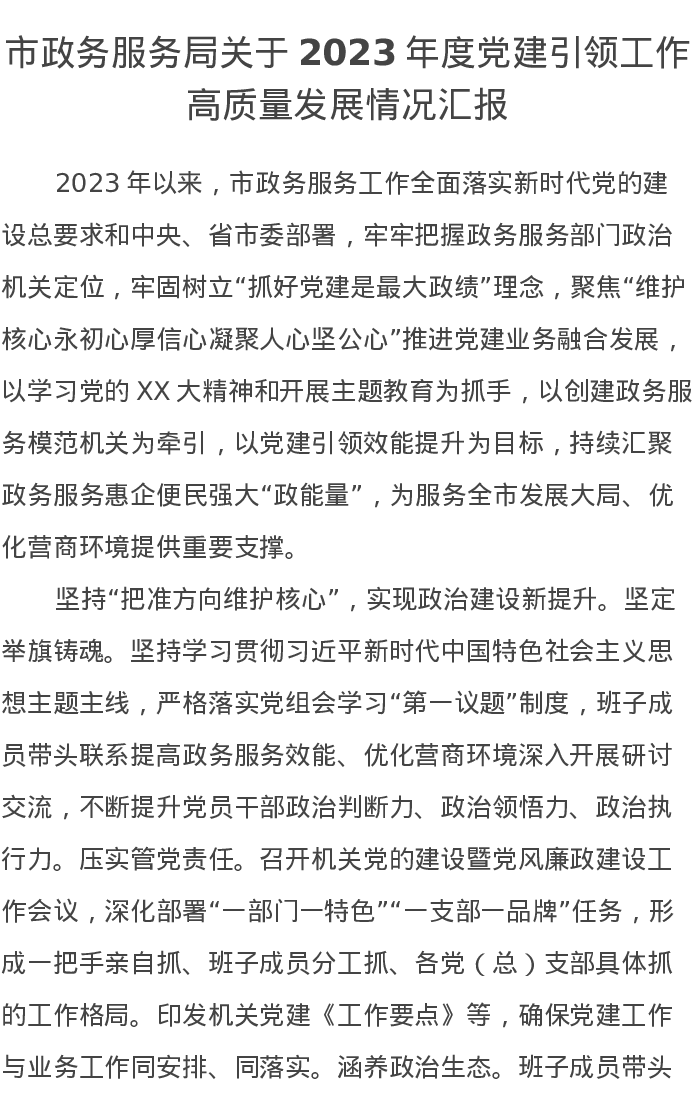 市政务服务局关于2023年度党建引领工作高质量发展情况汇报