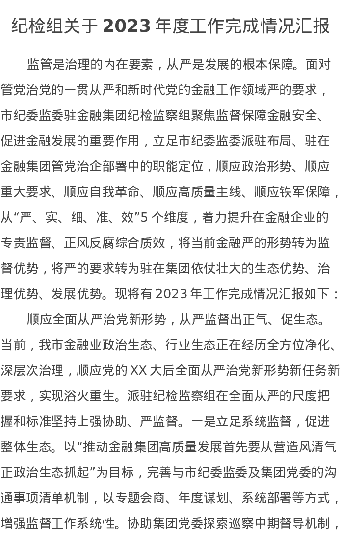 纪检组关于2023年度工作完成情况汇报