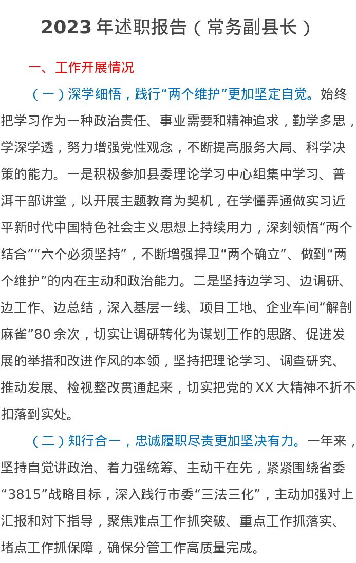 2023年述职报告(常务副县长)