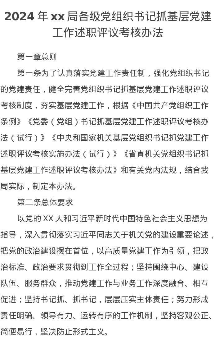 2024年xx局各级党组织书记抓基层党建工作述职评议考核办法