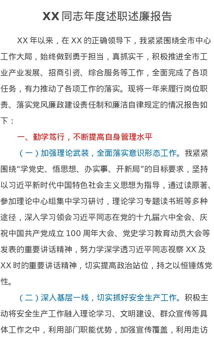 XX同志2023年度述职述廉报告(办公室工作、招商引资工作)
